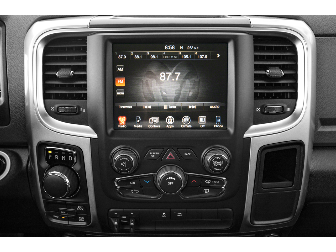 17" x 7" Aluminum Wheels, 26 Gallon Fuel Tank, 3.21 Rear Axle Ratio, 4-Wheel Disc Brakes, 40/20/40 Split Bench Seat, 6 Speakers, ABS brakes, Active Grille Shutters, Air Conditioning, Alloy wheels, AM/FM radio, Black Exterior Mirrors, Brake assist, Bumpers: chrome, Center Hub, Charge Only Remote USB Port, Cloth 40/20/40 Bench Seat, Compass, Delay-off headlights, Driver door bin, Dual front impact airbags, Dual front side impact airbags, Electronic Shift, Electronic Stability Control, Exterior Mirrors w/Heating Element, Front anti-roll bar, Front Armrest w/3 Cupholders, Front Center Armrest w/Storage, Front reading lights, Front wheel independent suspension, Fully automatic headlights, GPS Antenna Input, Heated door mirrors, Illuminated entry, Integrated Voice Command w/Bluetooth®, Low tire pressure warning, Occupant sensing airbag, Outside temperature display, Overhead airbag, Overhead console, Panic alarm, Passenger door bin, Passenger vanity mirror, Power door mirrors, Power steering, Power windows, Radio data system, Radio: Uconnect 5.0 AM/FM/BT, Rear anti-roll bar, Rear seat center armrest, Rear step bumper, Remote keyless entry, Speed control, Storage Tray, Tachometer, Tilt steering wheel, Tip Start, Traction control, Trip computer, Variably intermittent wipers, Voltmeter.