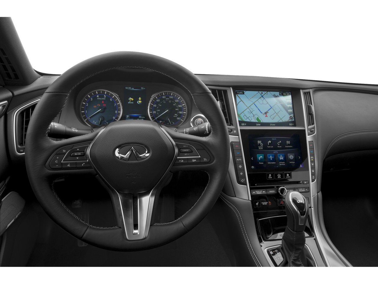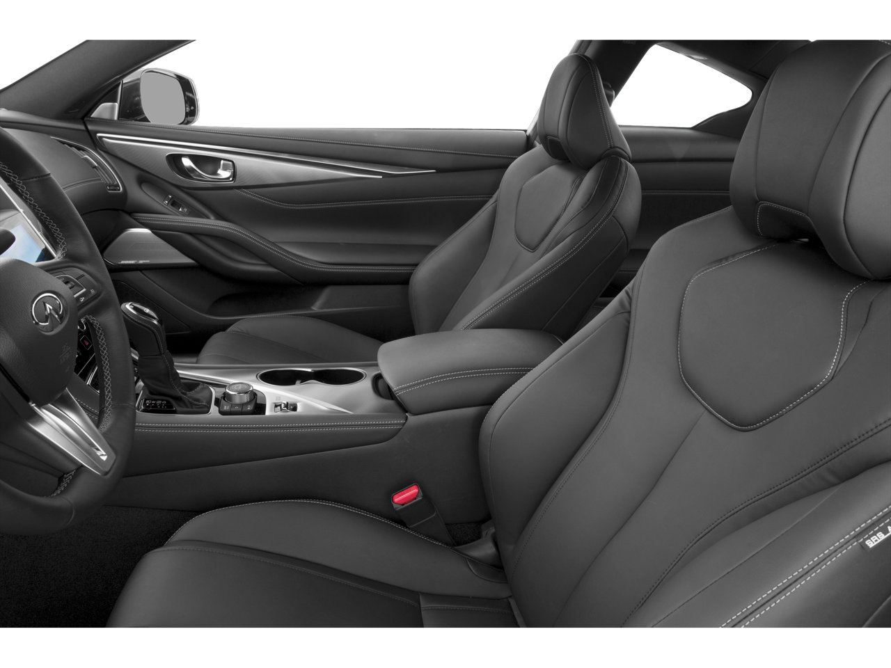 13 Speakers, 19" Aluminum-Alloy Wheels, 4-Wheel Disc Brakes, ABS brakes, Air Conditioning, Alloy wheels, AM/FM radio: SiriusXM, Auto-Dimming Outside Mirrors w/Reverse Tilt-Down, Auto-dimming Rear-View mirror, Automatic temperature control, Brake assist, Bumpers: body-color, Cargo Package, CD player, Compass, Delay-off headlights, Driver door bin, Driver vanity mirror, Driver's Seat 2-Way Power Lumbar & Side Bolsters, Dual front impact airbags, Dual front side impact airbags, Dual-Occupant Memory System For Driver Seat, Electronic Stability Control, Essential Package, Four wheel independent suspension, Front anti-roll bar, Front Bucket Seats, Front Center Armrest, Front dual zone A/C, Front fog lights, Front reading lights, Fully automatic headlights, Garage door transmitter: HomeLink, Heated door mirrors, Heated Front Seats, Heated Steering Wheel, Illuminated entry, INFINITI InTouch Navigation System, INFINITI Radiant Illuminated Kick Plates, INFINITI Radiant Interior Ambient Lighting, INFINITI Radiant Welcome Lighting, Leather Shift Knob, Leather steering wheel, Leatherette Seating Surfaces, Literature Kit, Low tire pressure warning, Occupant sensing airbag, Outside temperature display, Overhead airbag, Overhead console, Panic alarm, Passenger door bin, Passenger vanity mirror, Power door mirrors, Power driver seat, Power moonroof, Power passenger seat, Power steering, Power Tilt & Telescopic Steering Column w/Memory, Power windows, ProASSIST Package, Radio data system, Radio: AM/FM HD Radio, Rear anti-roll bar, Rear window defroster, Remote Engine Start System, Remote keyless entry, Security system, Semi-Aniline Leather Seating Package, Semi-Aniline Leather-Appointed Seating Surfaces, Speed control, Speed-sensing steering, Speed-Sensitive Wipers, Steering wheel mounted audio controls, Tachometer, Telescoping steering wheel, Tilt steering wheel, Traction control, Trip computer, Turn signal indicator mirrors, Variably intermittent wipers.
