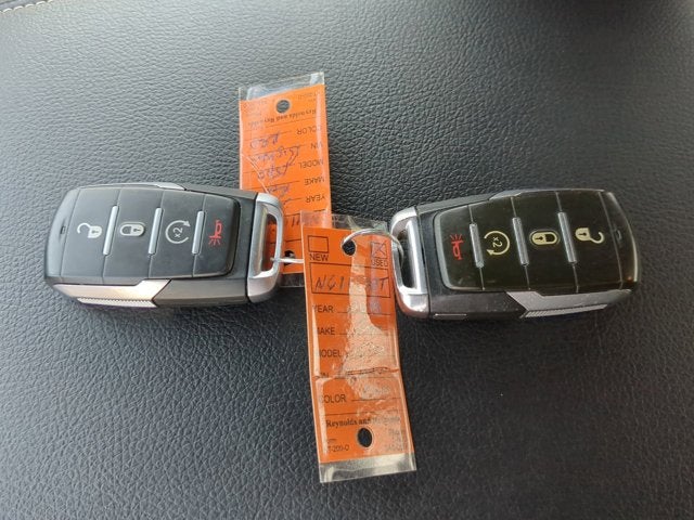 3 Rear Seat Head Restraints, 4 Way Front Headrests, 4-Wheel Disc Brakes, 48V Belt Starter Generator, 6 Speakers, ABS brakes, Air Conditioning, Alloy wheels, AM/FM radio, Big Horn Level 1 Equipment Group, Brake assist, Bumpers: chrome, Cloth Bench Seat, Compass, Delay-off headlights, Driver door bin, Dual front impact airbags, Dual front side impact airbags, E-Locker Rear Axle, Electronic Stability Control, Front anti-roll bar, Front Center Armrest w/Storage, Front fog lights, Front reading lights, Front Seat Back Map Pockets, Front wheel independent suspension, Fully automatic headlights, GPS Antenna Input, Heated door mirrors, Illuminated entry, Leather steering wheel, Low tire pressure warning, Manufacturer's Statement of Origin, Occupant sensing airbag, Outside temperature display, Overhead airbag, Overhead console, Panic alarm, ParkView Rear Back-Up Camera, Passenger door bin, Passenger vanity mirror, Power door mirrors, Power steering, Power windows, Protection Group, Quick Order Package 25Z Big Horn/Lone Star, Radio data system, Radio: Uconnect 3 w/5" Display, Radio: Uconnect 4 w/8.4" Display, Rear 60/40 Folding Seat, Rear anti-roll bar, Rear seat center armrest, Rear step bumper, Rear Underseat Compartment Storage, Remote keyless entry, Remote Start System, Single Disc Remote CD Player, Speed control, Split folding rear seat, Tachometer, Telescoping steering wheel, Tilt steering wheel, Tow Hooks, Traction control, Trailer Brake Control, Trip computer, Variably intermittent wipers, Voltmeter, Wheels: 18" x 8", Wheels: 20" x 9" Aluminum Chrome Clad.