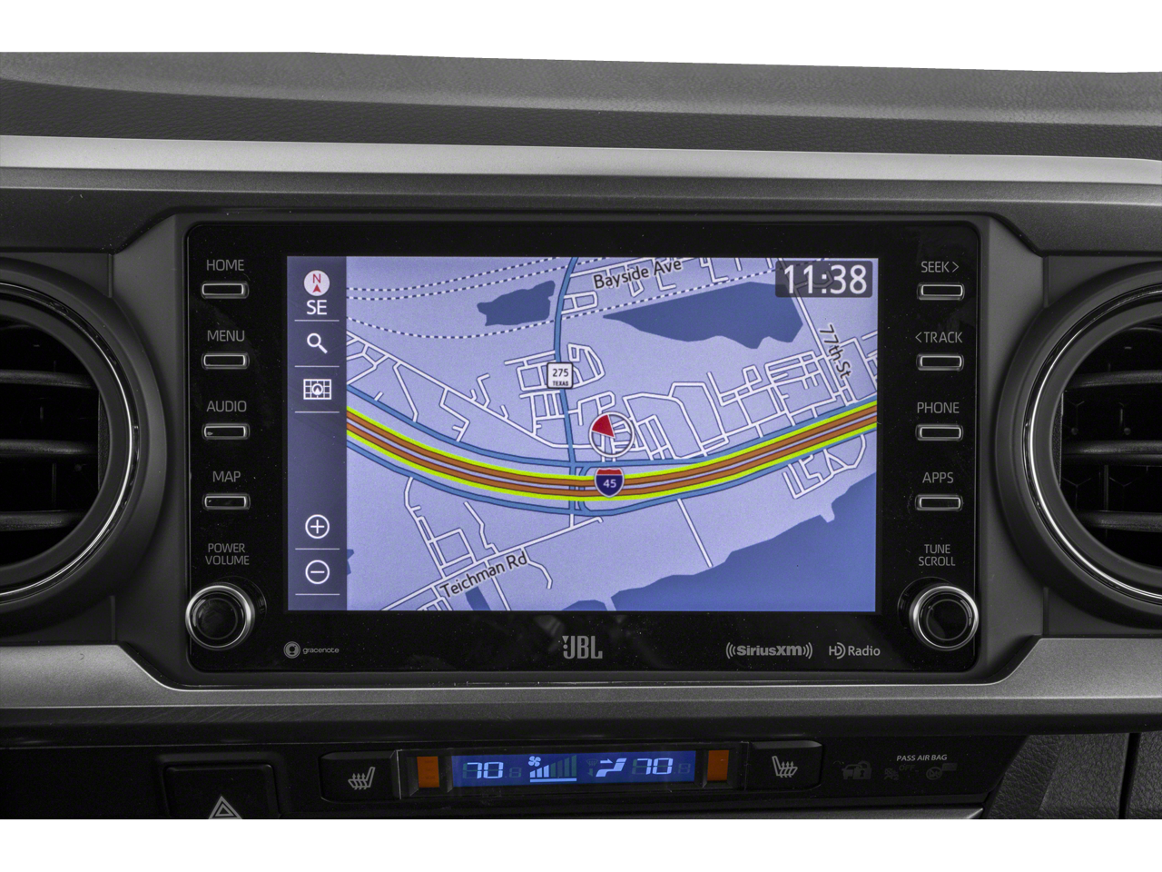 4WD, 7 Speakers, ABS brakes, Air Conditioning, Alloy wheels, AM/FM radio: SiriusXM, Anti-whiplash front head restraints, Apple CarPlay/Android Auto, Auto High-beam Headlights, Auto-dimming Rear-View mirror, Automatic temperature control, Axle Ratio: 3.91, Brake assist, Bumpers: body-color, Driver door bin, Driver vanity mirror, Dual front impact airbags, Dual front side impact airbags, Electronic Stability Control, Emergency communication system: Safety Connect with 1-year trial, Front anti-roll bar, Front Bucket Seats, Front Center Armrest, Front dual zone A/C, Front fog lights, Front reading lights, Front wheel independent suspension, Fully automatic headlights, Garage door transmitter: HomeLink, Heated door mirrors, Illuminated entry, Knee airbag, Leather Seat Trim, Leather Shift Knob, Low tire pressure warning, Navigation System, Occupant sensing airbag, Outside temperature display, Overhead airbag, Overhead console, Panic alarm, Passenger door bin, Passenger vanity mirror, Power door mirrors, Power driver seat, Power moonroof, Power steering, Power windows, Radio: Premium JBL AM/FM w/Nav & App Radio, Rear Parking Sensors, Rear step bumper, Remote keyless entry, Security system, Speed control, Speed-sensing steering, Split folding rear seat, Steering wheel mounted audio controls, Tachometer, Telescoping steering wheel, Tilt steering wheel, Traction control, Trip computer, Turn signal indicator mirrors, Variably intermittent wipers, Wheels: 18" x 7.5J Polished Alloy, 4WD.