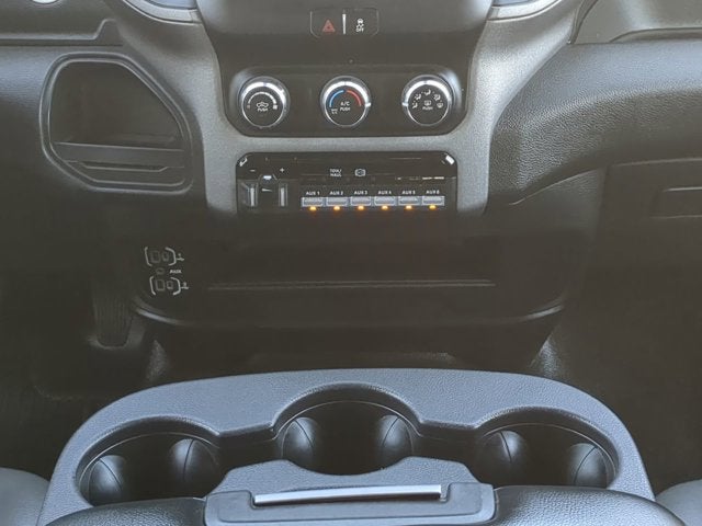 19.5" x 6.0" Steel Wheels, 2 Red Vinyl Flags, 2 Way Rear Headrest Seat, 3 Reflecting Triangles, 4-Wheel Disc Brakes, 40/20/40 Split Bench Seat, 5.0" Touchscreen Display, 6 Speakers, 87 mph Maximum Speed, ABS brakes, Air Conditioning, AM/FM radio, Black Exterior Mirrors, Black Key Fob, Black Wheel Flares, Bright Front Bumper, Center Hub, Chrome Appearance Group, Chrome Grille Surround, Cold Weather Group, Delay-off headlights, Door Sill Scuff Pads, DOT Certified Roadside Safety Kit, DOT Fire Extinguisher, Driver door bin, Dual front impact airbags, Dual rear wheels, Electronic Stability Control, Electronically Controlled Throttle, Engine Block Heater, Exterior Mirrors Courtesy Lamps, Exterior Mirrors w/Heating Element, Exterior Mirrors w/Supplemental Signals, For More Info, Call 800-643-2112, Front anti-roll bar, Front Armrest w/Cupholders, Front Center Armrest w/Storage, Front License Plate Bracket, Front reading lights, Fully automatic headlights, Glove Box, GPS Antenna Input, Halogen Quad Headlamps, HD Vinyl 40/20/40 Split Bench Seat, Heated door mirrors, Integrated Voice Command w/Bluetooth®, Manual Adjust 4-Way Driver Seat, Manual Adjust 4-Way Front Passenger Seat, Map/Courtesy Lamp, Matte Black Grille Surround, Matte Black Mesh w/Chrome Grille, Max Tow Package, Mirror Running Lights, Mirror-Mounted Aux Reverse Lamps, Mopar Black Tubular Side Steps, MOPAR Winter Front Grille Cover, Occupant sensing airbag, Overhead Console, Overhead Cupholder Lamp, Passenger door bin, Passenger vanity mirror, Power Black Trailer Tow Mirrors, Power door mirrors, Power steering, Power windows, Quick Order Package 2YA Tradesman, Radio data system, Radio: Uconnect 3 w/5" Display, Radio: Uconnect 3.0, Rear anti-roll bar, Rear Dome Lamp, Rear Folding Seat, Remote Keyless Entry, SiriusXM Radio Service, SiriusXM Satellite Radio, Spare Fuses, Speed control, Storage Tray, Tachometer, Temperature & Compass Gauge, Tilt steering wheel, Traction control, Trailer Brake Control, Trailer Light Check, Trailer Tow Mirrors, Turn signal indicator mirrors, Urethane Shift Control, USB Host Flip, Variably intermittent wipers, Voltmeter.