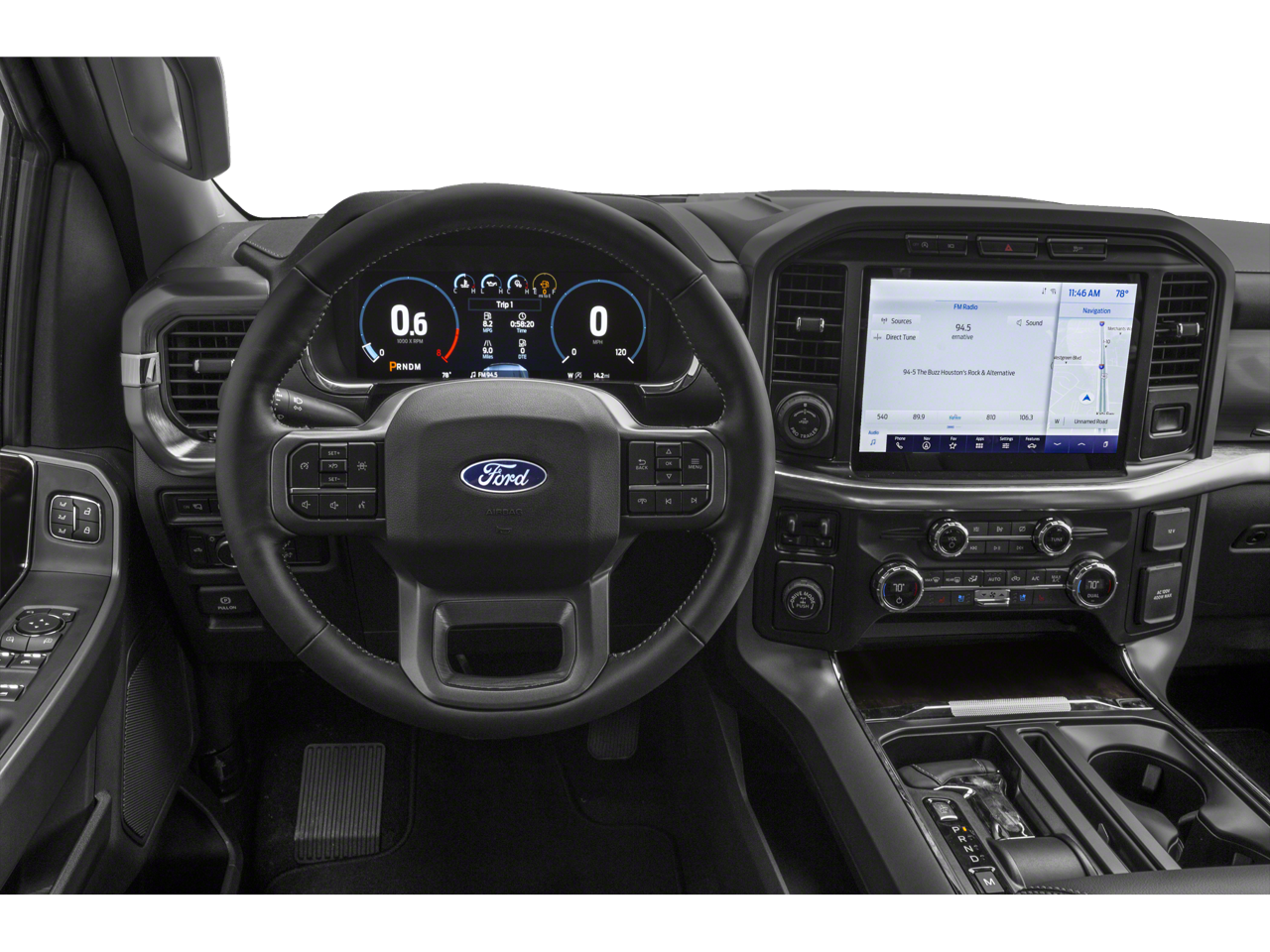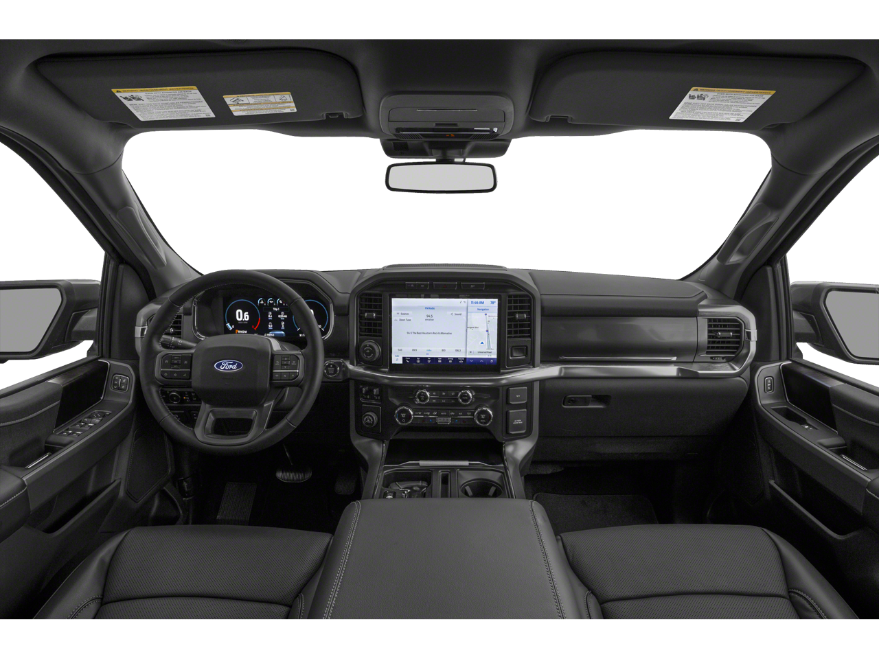 4WD, 18" Machined-Aluminum Wheels, 4-Wheel Disc Brakes, 7 Speakers, ABS brakes, Accent-Color Angular Step Bars, Adjustable pedals, Air Conditioning, Alloy wheels, AM/FM radio: SiriusXM with 360L, Auto High-beam Headlights, Auto Start-Stop Removal, Auto-dimming door mirrors, Auto-dimming Rear-View mirror, Automatic temperature control, Body-Color Front & Rear Bumpers, Box Side Decals, Brake assist, Bumpers: chrome, Chrome Single-Tip Exhaust, Class IV Trailer Hitch Receiver, Compass, Connected Navigation & SiriusXM w/360L Removal, Dark 2-Bar & 1 Minor Bar Style Grille, Delay-off headlights, Driver door bin, Driver vanity mirror, Dual front impact airbags, Dual front side impact airbags, Electronic Stability Control, Emergency communication system: SYNC 4 911 Assist, Equipment Group 501A Mid, Extended Range 36 Gallon Fuel Tank, Exterior Parking Camera Rear, Front anti-roll bar, Front Center Armrest w/Storage, Front dual zone A/C, Front fog lights, Front reading lights, Front wheel independent suspension, Fully automatic headlights, FX4 Off-Road Package, Heated door mirrors, Heated front seats, Illuminated entry, Integrated Trailer Brake Controller, Interior Work Surface, Lariat Sport Appearance Package, Leather-Trimmed 40/20/40 Front Seat, LED Sideview Mirror Spotlights, Low tire pressure warning, Memory seat, Occupant sensing airbag, Onboard 400W Outlet, Outside temperature display, Overhead airbag, Overhead console, Panic alarm, Passenger door bin, Passenger vanity mirror, Pedal memory, Power door mirrors, Power driver seat, Power passenger seat, Power steering, Power windows, Pro Trailer Backup Assist, Radio data system, Radio: AM/FM SiriusXM w/360L, Radio: B&O Sound System by Bang & Olufsen, Rear reading lights, Rear seat center armrest, Rear step bumper, Rear window defroster, Remote keyless entry, Security system, Speed control, Speed-sensing steering, Split folding rear seat, Steering wheel mounted audio controls, SYNC 4 w/Enhanced Voice Recognition, Tachometer, Telescoping steering wheel, Tilt steering wheel, Traction control, Trailer Tow Package, Tray Style Floor Liner (47W), Trip computer, Turn signal indicator mirrors, Variably intermittent wipers, Ventilated front seats, Voltmeter, Wheels: 18" 6-Spoke Machined Aluminum, Wheels: 20" 6-Spoke Dark Alloy Painted Aluminum, 4WD.