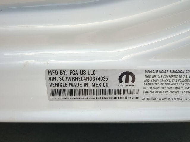 19.5" x 6.0" Steel Wheels, 2 Way Rear Headrest Seat, 220 Amp Alternator, 4 Way Front Headrests, 4-Wheel Disc Brakes, 40/20/40 Split Bench Seat, 4G LTE Wi-Fi Hot Spot, 6 Speakers, 8.4" Touchscreen Display, 87 mph Maximum Speed, ABS brakes, Air Conditioning, All R1 Low Radios, All Radio Equipped Vehicles, Apple CarPlay, Black Exterior Mirrors, Black Key Fob, Black Wheel Flares, Bluetooth® Handsfree Phone & Audio, Bright Front Bumper, Center Hub, Chrome Appearance Group, Chrome Grille Surround, Cluster 3.5" TFT Color Display, Cold Weather Group, Compass, Connectivity - US/Canada, Delay-off headlights, Door Sill Scuff Pads, Driver door bin, Dual front impact airbags, Dual rear wheels, Electronic Stability Control, Electronically Controlled Throttle, Emergency communication system: SiriusXM Guardian, Engine Block Heater, Exterior Mirrors Courtesy Lamps, Exterior Mirrors w/Heating Element, Exterior Mirrors w/Supplemental Signals, For Details, Visit DriveUconnect.com, For More Info, Call 800-643-2112, Front anti-roll bar, Front Armrest w/Cupholders, Front Center Armrest w/Storage, Front License Plate Bracket, Front reading lights, Fully automatic headlights, Global Telematics Box Module (TBM), Glove Box, Google Android Auto, GPS Antenna Input, Halogen Quad Headlamps, HD Vinyl 40/20/40 Split Bench Seat, Heated door mirrors, Heavy Duty Front Suspension Group, Heavy Duty Snow Plow Prep Group, Integrated Center Stack Radio, Integrated Voice Command w/Bluetooth®, Manual Adjust 4-Way Driver Seat, Manual Adjust 4-Way Front Passenger Seat, Map/Courtesy Lamp, Matte Black Grille Surround, Matte Black Mesh w/Chrome Grille, Max Tow Package, Mirror Running Lights, MOPAR Winter Front Grille Cover, Occupant sensing airbag, Outside temperature display, Overhead Console, Overhead Cupholder Lamp, ParkView Rear Back-Up Camera, Passenger door bin, Passenger vanity mirror, Power Black Trailer Tow Mirrors, Power door mirrors, Power steering, Power windows, Quick Order Package 2YA Tradesman, Radio data system, Radio: Uconnect 3 w/5" Display, Radio: Uconnect 5 w/8.4" Display, Rear anti-roll bar, Rear Folding Seat, Remote Keyless Entry, SiriusXM Radio Service, SiriusXM Satellite Radio, Speed control, Storage Tray, Tachometer, Temperature & Compass Gauge, Tilt steering wheel, Traction control, Trailer Brake Control, Trailer Light Check, Trailer Tow Mirrors, Turn signal indicator mirrors, Urethane Shift Control, Variably intermittent wipers, Voltmeter.