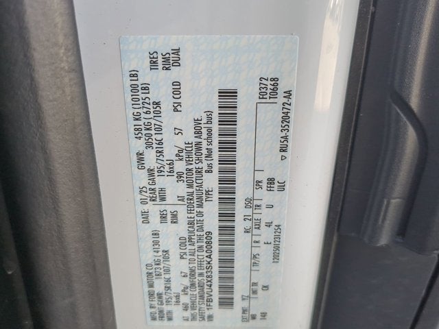 2 Additional Keys (4 Total), 3rd row seats: split-bench, 4-Wheel Disc Brakes, 4.10 Limited-Slip Axle Ratio, 4th-Row Bench Seat, 5th row bench seat, 8 Speakers, ABS brakes, Air Conditioning, AM/FM radio, Auto High-beam Headlights, Back Up Alarm, Brake assist, Cloth Front Bucket Seats, Dark Palazzo Gray Cloth Bucket Seats, Delay-off headlights, Driver door bin, Driver vanity mirror, Driver's Seat Mounted Armrest, Dual front impact airbags, Dual front side impact airbags, Dual rear wheels, Electronic Air Temperature Control, Electronic Stability Control, Frame Mounted Hitch Receiver, Front anti-roll bar, Front Bucket Seats, Front Fog Lamps, Front License Plate Bracket, Front Overhead Shelf, Front reading lights, Front wheel independent suspension, Fully automatic headlights, Heavy-Duty Trailer Tow Package, Illuminated entry, Intelligent Speed Assist (ISA), Internet access capable: FordPass Connect 4G, Keyless Entry Keypad, Large Center Console, Low tire pressure warning, Midship Extended Range Fuel Tank (31 Gallons), Occupant sensing airbag, Overhead airbag, Panic alarm, Passenger door bin, Passenger Running Board, Passenger seat mounted armrest, Passenger vanity mirror, Power door mirrors, Power steering, Power windows, Privacy Glass, Radio: AM/FM Stereo w/SYNC 4 & Nav, Radio: AM/FM Stereo w/SYNC 4/SiriusXM w/360L, Rain sensing wipers, Rear air conditioning, Rear window defroster, Rear-Window Defroster, Remote keyless entry, Remote Start, Reverse Sensing System, Speed control, Steering wheel mounted audio controls, Tachometer, Telescoping steering wheel, Tilt steering wheel, Tow/Haul Mode w/Trailer Wiring Prov, Traction control, Traffic Sign Recognition (TSR), Trailer Brake Controller (TBC), Variably intermittent wipers, Wheels: 16" Heavy-Duty Silver Steel w/Silver Hubcaps.