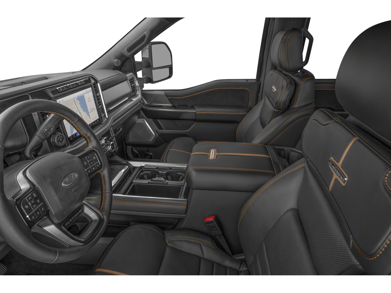 4WD, 14 Speakers, 4-Wheel Disc Brakes, 410 Amp Dual Alternators, 5th Wheel/Gooseneck Hitch Prep Package, ABS brakes, Adjustable pedals, Air Conditioning, All-Weather Floor Mats, Alloy wheels, AM/FM radio: SiriusXM with 360L, Auto High-beam Headlights, Auto tilt-away steering wheel, Auto-dimming Rear-View mirror, Automatic temperature control, Brake assist, Bumpers: body-color, Compass, Delay-off headlights, Driver door bin, Driver vanity mirror, Dual front impact airbags, Dual front side impact airbags, Electronic Stability Control, Emergency communication system: SYNC 4 911 Assist, Engine Block Heater, Flow-Through Console, Ford Connectivity Package (1-Year Included), Front anti-roll bar, Front Bucket Seats, Front Center Armrest, Front dual zone A/C, Front fog lights, Front License Plate Bracket, Front reading lights, Fully automatic headlights, FX4 Off-Road Package, Garage door transmitter, GVWR: F-250 >10K Package, Heads-Up Display, Heated door mirrors, Heated front seats, Heated rear seats, Heated steering wheel, High Capacity 11.6" Axle Upgrade Package, Hill Descent Control, Illuminated entry, Illuminated Scuff Plates, Internet access capable: 5G Modem - Ford Connectivity Package, Leather steering wheel, LED Roof Clearance Lights, Low tire pressure warning, Memory seat, Navigation system: Connected Navigation, Off-Road Specifically Tuned Shock Absorbers, Order Code 703A, Outside temperature display, Overhead airbag, Overhead console, Panic alarm, Passenger door bin, Passenger vanity mirror, Pedal memory, Platinum Plus Package, Power door mirrors, Power driver seat, Power passenger seat, Power steering, Power windows, Premium Leather Instrument Panel Topper, Premium Luxury Leather-Wrapped Steering Wheel, Premium Venetian Leather Door Panel, Radio: B&O Unleashed Sound System by Bang & Olufsen, Rain sensing wipers, Rapid-Heat Supplemental Cab Heater, Rear reading lights, Rear seat center armrest, Rear step bumper, Rear window defroster, Remote keyless entry, Satin Chrome Door Handles, SecuriCode Keyless Entry Keypad (driver's Side), Security system, SiriusXM with 360L, Speed control, Split folding rear seat, Steering wheel memory, Steering wheel mounted A/C controls, Steering wheel mounted audio controls, SYNC 4 with Enhanced Voice Recognition, Tachometer, Telescoping steering wheel, Tilt steering wheel, Traction control, Trip computer, Turn signal indicator mirrors, Unique FX4 Off-Road Box Decal, Unique Platinum Leather 40/Console/40 Seats, Unique Satin Finish Grille, Unique Split Center Console Armrest, Variably intermittent wipers, Vehicle Safe by Console Vault, Ventilated front seats, Wheels: 20" Bright Machined and Painted Aluminum, 4WD.